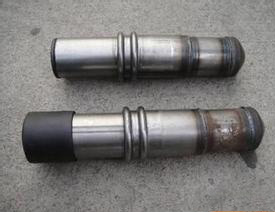 管子一般随钢筋笼分段安装,每段之间的接头可采用反螺纹套筒接口或套管焊接方案,如图8所示:若采用波纹管则可利用大一号的波纹管套接,并在套接管的两端用胶布缠绕密封。无论那种接头方案都必须保证在较高的静水压力下不漏浆,接口内壁应保持平整,不应有焊渣、毛刺等凸出物,以免妨碍探头的自如移动,声测管的底部也应密封,安装完毕后应将上口用木塞堵住,以免浇灌混凝土时落入异物,致使孔道堵塞。